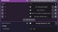 Hi everyone! I've been working on the Visual Editor for the past few days and I'm happy to say its mostly completed. You can edit dialogue, add conditions and functions, and save it to a branch resour...